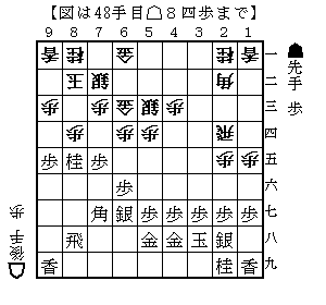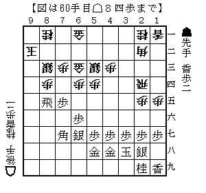 ▲8八飛△1五歩▲9七桂△8二玉▲8五桂△8四歩(下図)