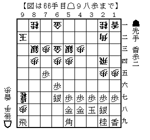 ▲8九飛に△8七香。この瞬間に狙いの▲9五香を放つ。